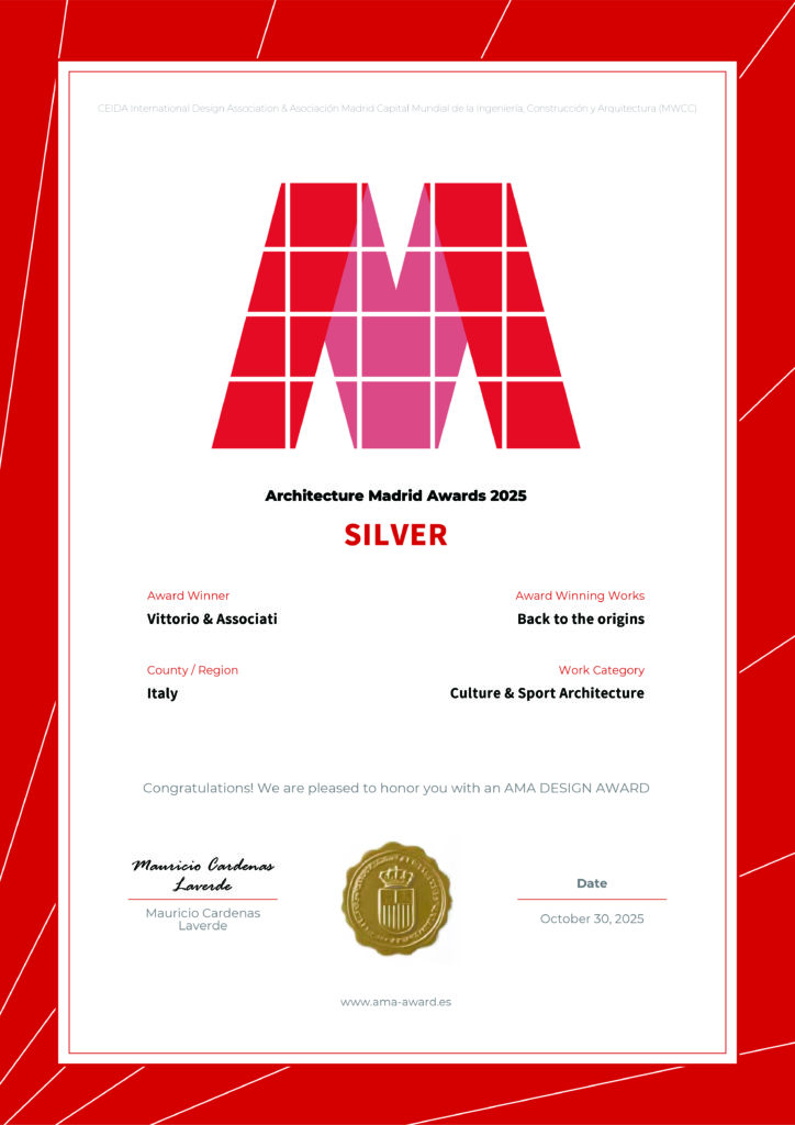 La Giuria lo ha premiato con il secondo premio “SILVER” per il progetto “back to the origins”, l’innovativo impianto sportivo di Lozzo di Cadore.