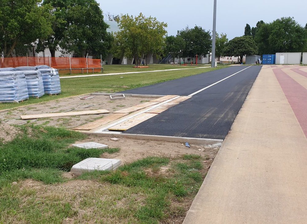 L’attuale pista di via Unità d’Italia è stata realizzata negli anni ’80 e poi trasformata nel 2004 in una pista con pedane in manto prefabbricato. La vetustà dell’impianto ha costretto il Comune ad intervenire. Il progetto prevede non solo di ricostruire la pista con un “retopping”, ma di completarla con le pedena necessarie all’omologazione. Lancio del martello/disco, lunetta del salto in alto ed asta, pedane del giavellotto e lungo/triplo. Utilizzo di materiali di prima qualità in sandwich misto