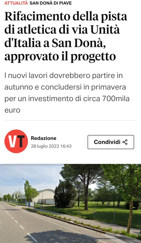 San Donà, investimenti per dotare la città di un impianto di atletica leggera di alto livello